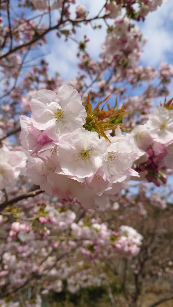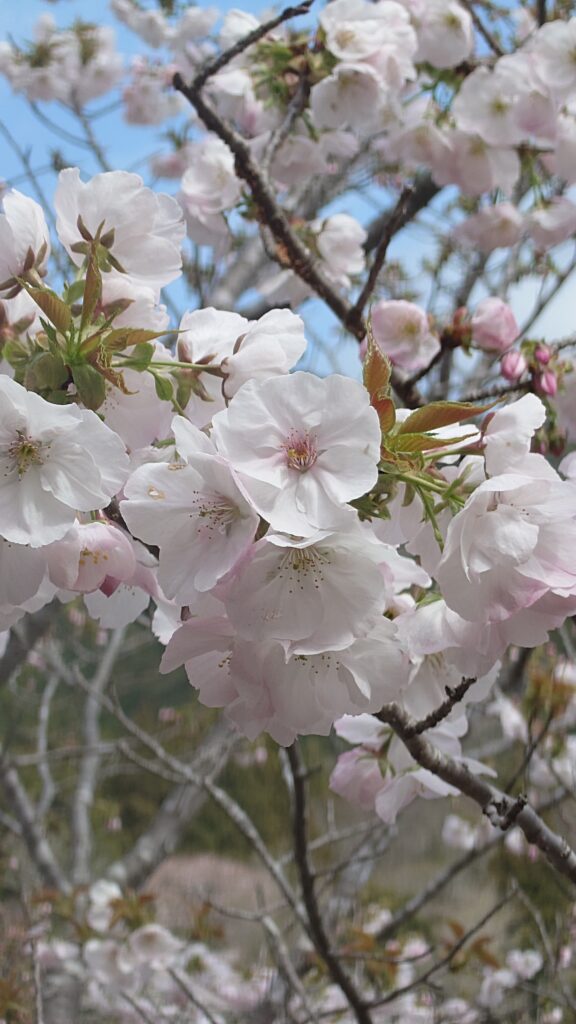 青空に映える横輪桜は、最高ですね‼️🔵🌸