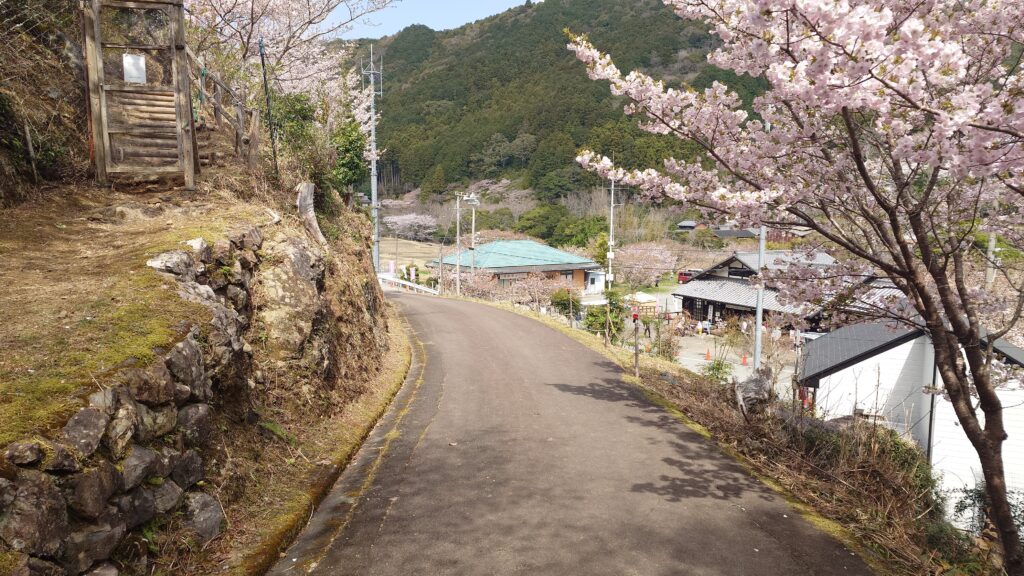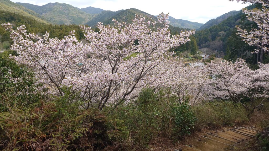 展望台からは集落が一望でき、あちらこちらに横輪桜が植えられているのが分かります。