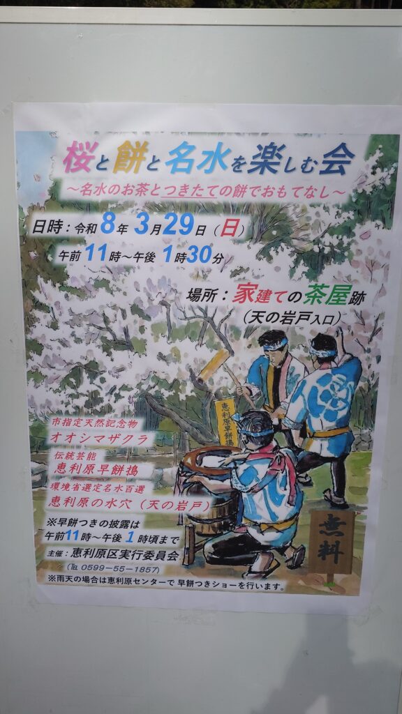3月29日(日)には、イベント桜と餅と名水を楽しむ会が開催されます。