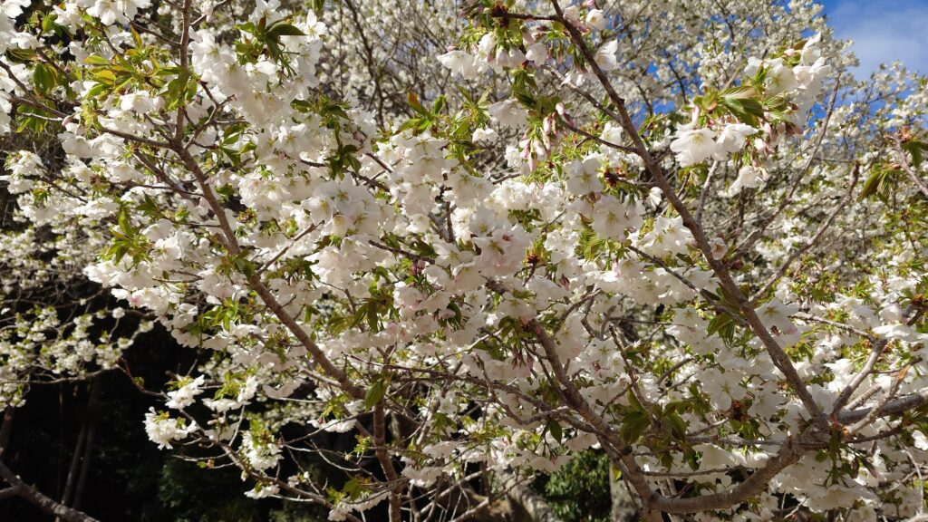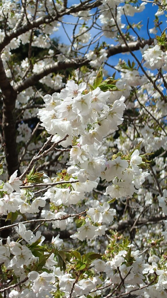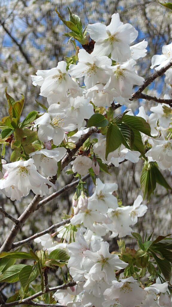 純白の花びらに若葉が混じるオオシマザクラは、またソメイヨシノとは違った見応えがあります。
