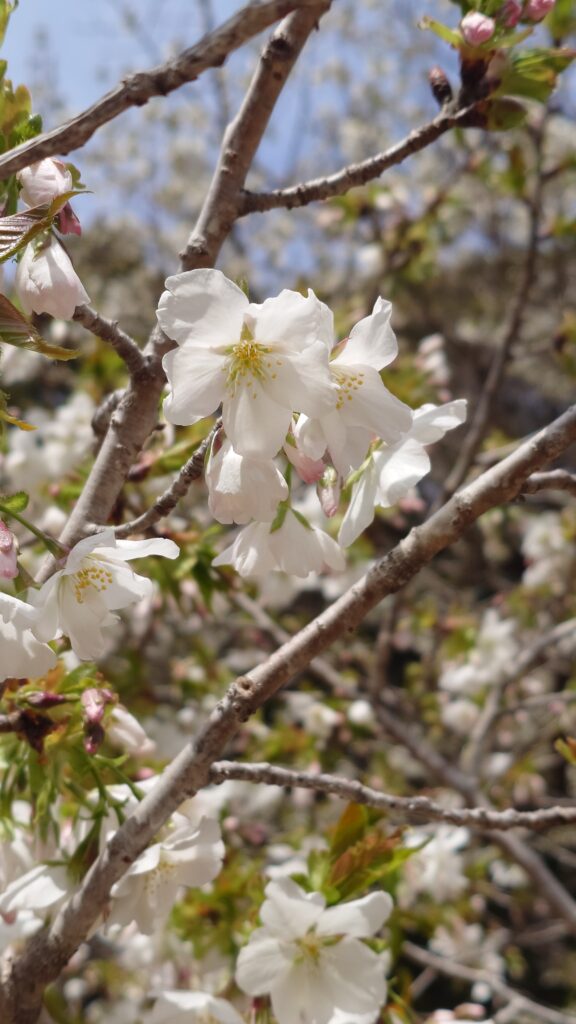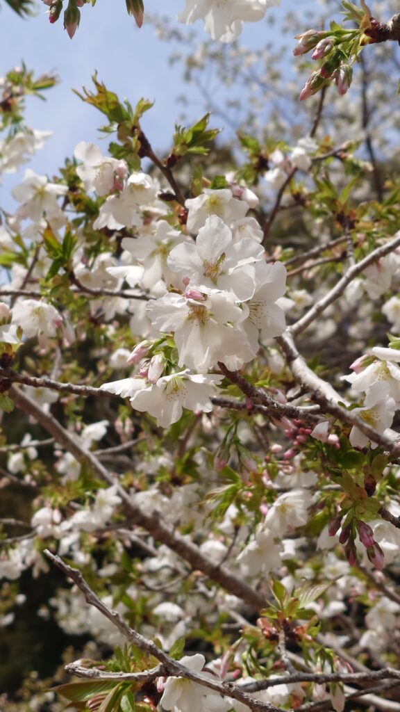純白の花びらに若葉が混じるオオシマザクラは、またソメイヨシノとは違った見応えがあります。