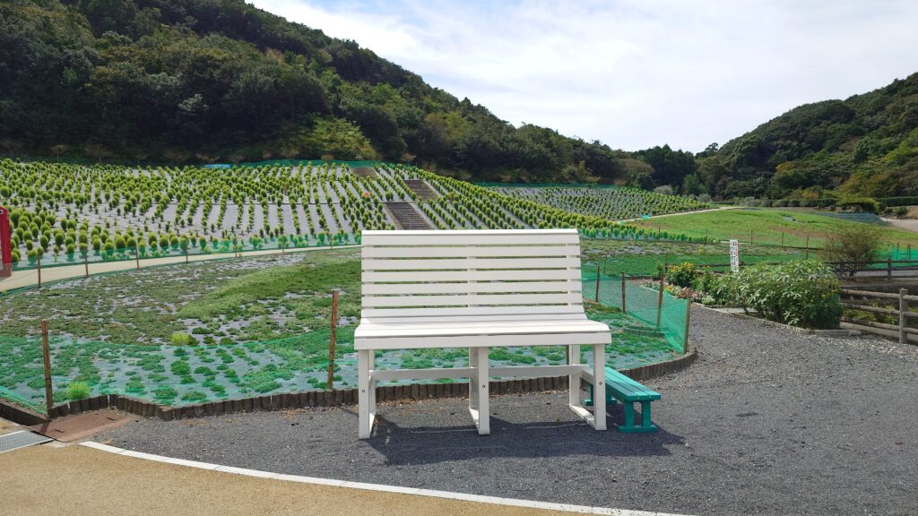 大きな白いベンチもあり、コキアをバックに写真を撮ると、最高ですね‼️😊📸🌳